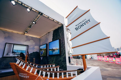 We designed a replica of a traditional fishing schooner that is common in Vietnam in the 20 x 20 area along the Harbourfront in Hong Kong. Wrapped from floor to ceiling of the tent was a picture of Ha Long Bay in Vietnam designed to immerse attendees with a feeling that transported them to this region. Along the dock or pathway to the ship, there were large displays with selected Marriott International luxury properties featured in the Asia Pacific region. This was a nod to the brand and a playful activation for families to learn more about Marriott Bonvoy.
